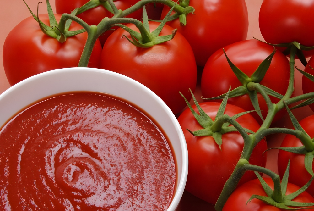 Ketchup is a decent substitute for tomato sauce since it has a consistency similar to tomato purée. Ketchup is made with tomatoes, sugar, acetic acid, and spices. But the amount of sugar is significantly high (1 teaspoon of sugar per 1 tablespoon of ketchup), and sugar comes from corn instead of tomatoes, which makes ketchup unhealthy.