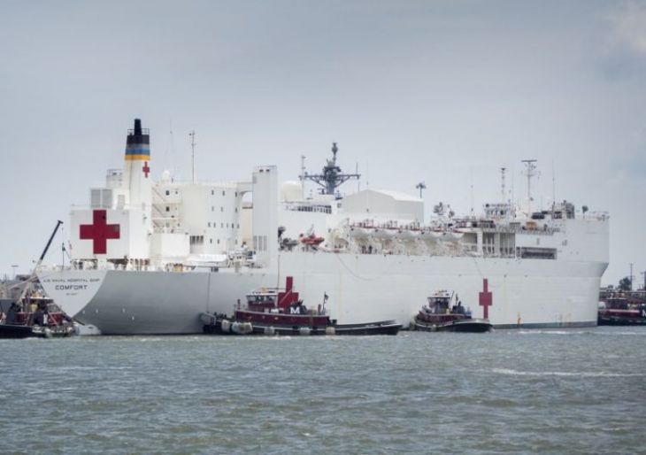 There is also a floating hospital, one of them is on this photo. By the way, it can accommodate up to four thousand sick or injured people, in case of hostilities.