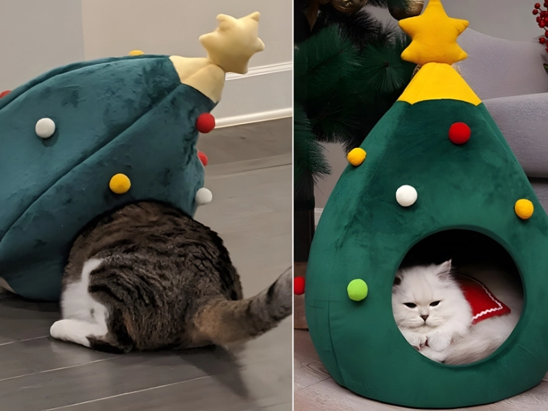 15. Cat Christmas Tree Den
