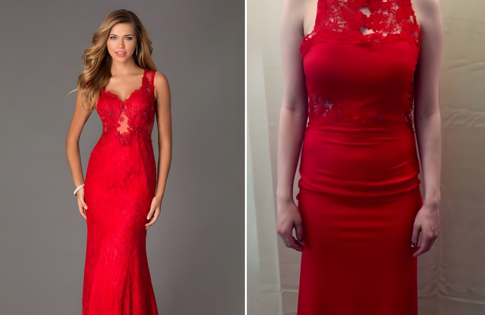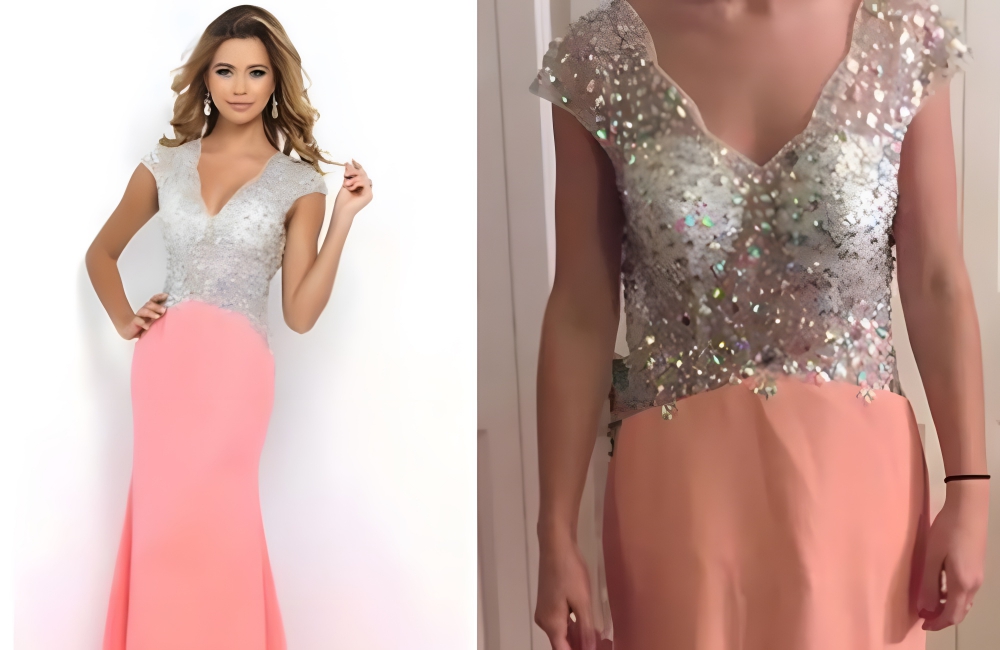 Instead, the pink was more of a salmon than a bubble gum shade. The manufacturer also neglected to state that the top part was totally see-through. The knockoff website clearly skimped when it came to the shiny sequins. Prom dress shopping can be a lot of fun—just don’t do it online.