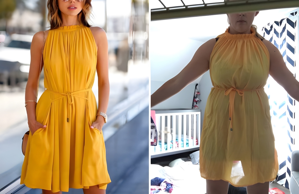 While we can’t confirm whether that’s true or isn’t, what is for sure is that this dress looks terrible. The peach maxi dress looks nothing like the one advertised, as the knockoff is cut more like a hospital gown. What’s worse is that one of the commenters said that she ordered “the same dress” for a “holiday party” years ago and got the “same mess.”
