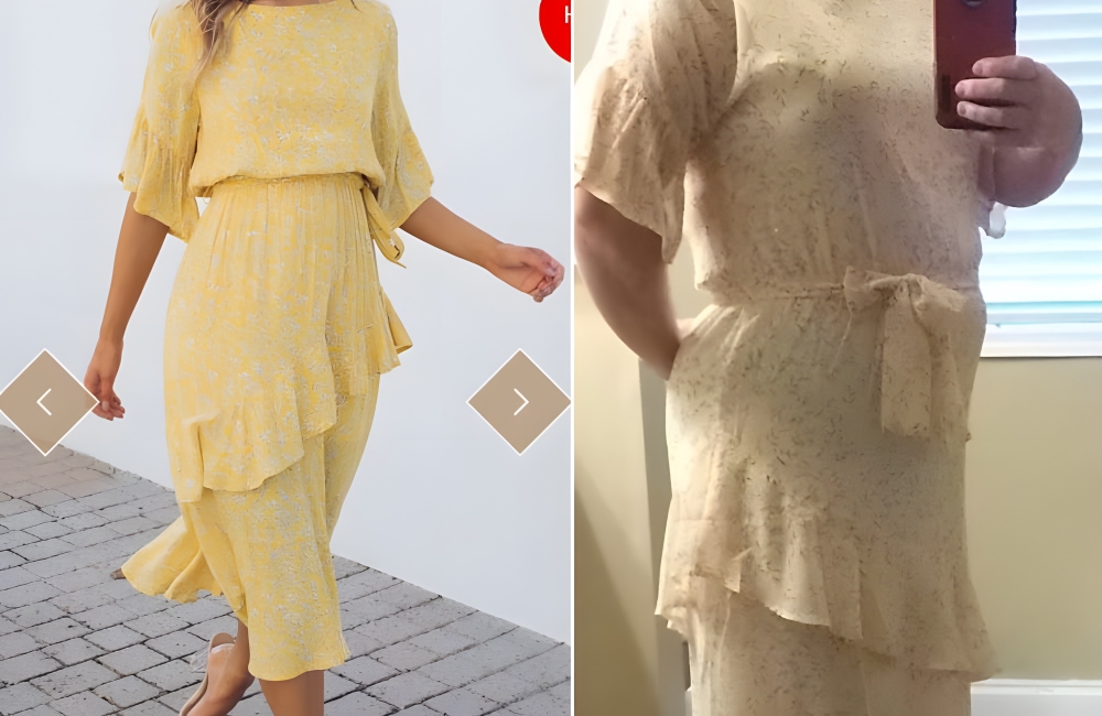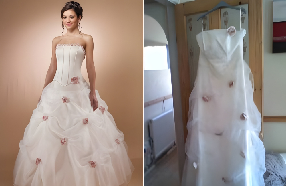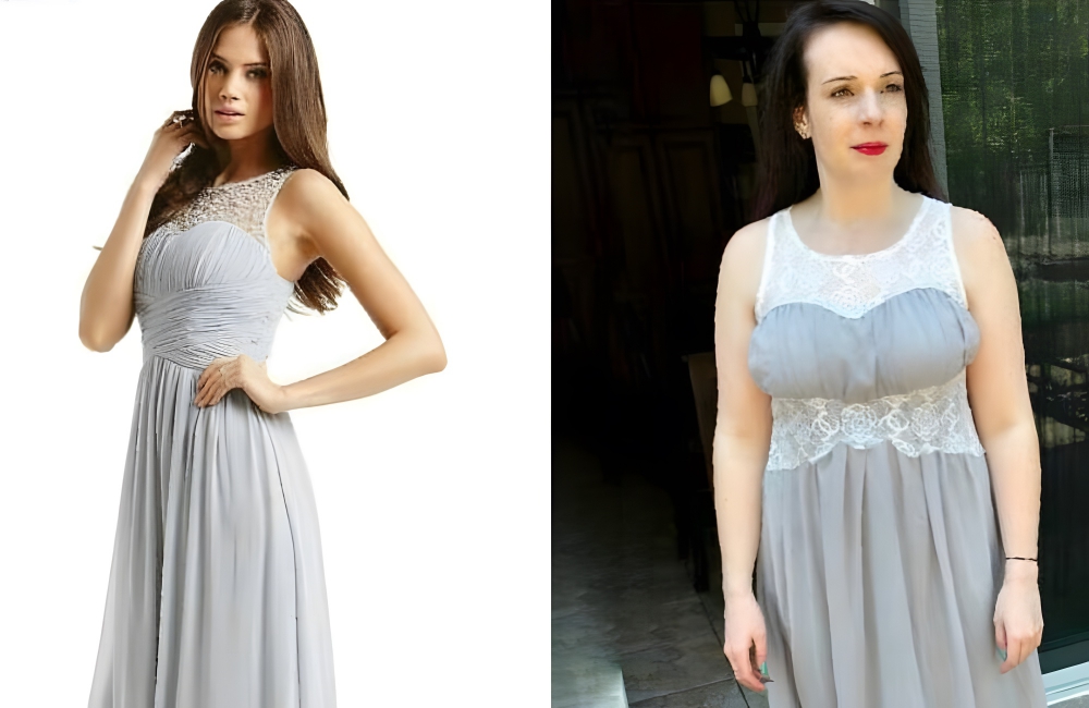 We’ve seen this a lot on this list. A dress will be advertised that is voluminous and stylish, but, when the skirt is actually received, it hangs flat. There is so much wrong with this purchase, which was shared on Knock Off Nightmares, a Facebook page.