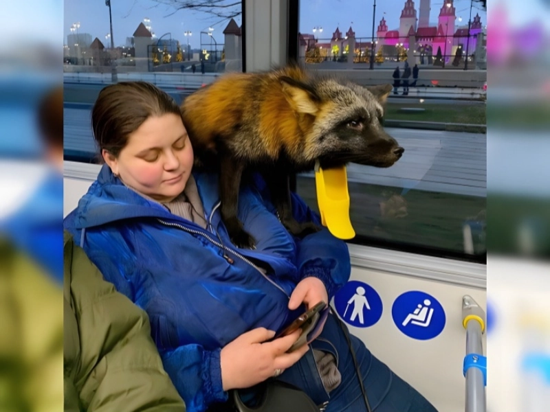On the bus with her favorite friend-fox. This amazing picture most certainly shows an odd and touching scenario of interspecies friendship on public transport. The picture most likely shows someone—probably a woman or a small child—sitting on a bus next to a domesticated fox. The fox can be curled up on the seat or sitting keenly, staring curiously at its surrounds. The human’s and the fox’s comfortable proximity as well as their body language clearly show their relationship. The reactions of other passengers would provide the picture more complexity, maybe displaying a mix of curiosity, worry, and amazement at the sight of this unusual creature. This picture questions our assumptions about domestication, wildness, and the kinds of creatures we might find appropriate friends. It begs issues regarding the morality and legality of owning wild animals as pets as well as emphasizes the close bonds that can develop between people and animals. The picture might initiate a discussion about responsible pet ownership, wildlife preservation, and the blurring lines separating domestic and wild animals in our modern society.