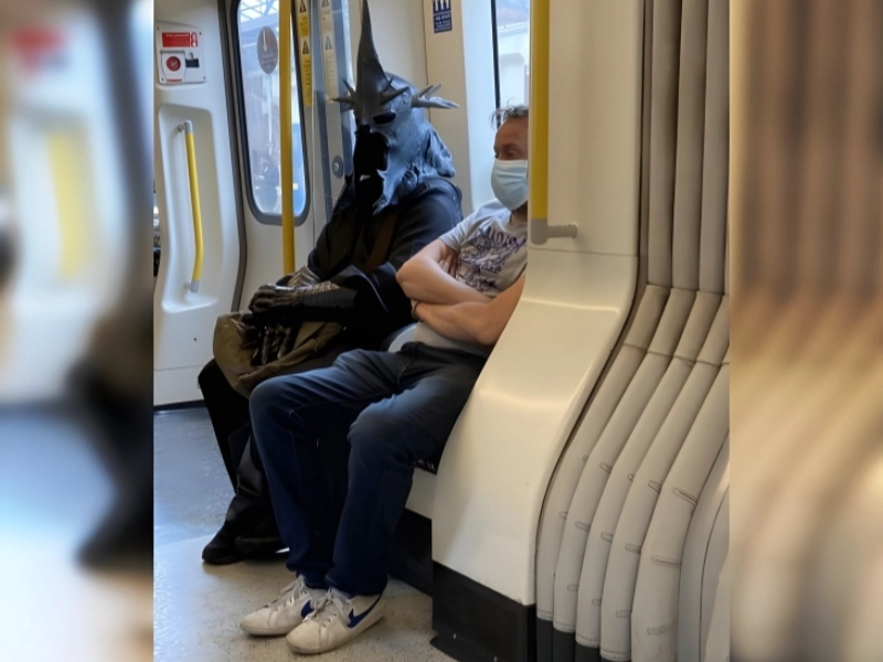 Nazgul riding the metro. This weird and maybe frightening picture probably depicts a scenario straight out of a fantasy world mismatched in the ordinary backdrop of a subway car. Complete with a black hooded robe and maybe even a prop sword, the picture most likely depicts someone costumed as a Nazgul, the terrible ring-wraiths from J.R.R. Tolkien’s “The Lord of the Rings.” There would be a stunning visual contrast between the unearthly, threatening apparition and the daily background of a subway car. Other passengers may be seen responding with a combination of amusement, uncertainty, and maybe some unease. The situation gains extra amusement from some people who look completely unaware of the dark presence in their midst and buried in their phones or books. This picture offers a lighthearted remark on the junction of dream and reality in our daily life. It might also draw attention to the often strange character of public transit, when individuals from all walks of life—and presumably all spheres of life—come together in close proximity. The picture could start conversations about cosplay culture, the predominance of fantasy in popular media, and the manner in which we include escapism’s components into our daily lives.
