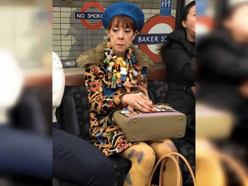 a really devoted Simpsons enthusiast. This interesting picture probably shows someone’s fervent public commitment to the venerable animated series “The Simpsons”. Perhaps sporting full-body yellow makeup to replicate the Simpsons’ unique skin tone, the image could represent someone who has gone to great efforts to portray a character from the program. They could be dressing in a costume that exactly matches Homer, Marge, Bart, Lisa, or even a more obscure Springfield character. The fan’s dedication might even reach to items like a pack of donuts or a Duff beer can. Presumably on public transit, the scene would have an element of incongruity from the surroundings. The hilarity of the picture would be enhanced by the responses of other passengers, maybe displaying a spectrum of faces from delighted smiles to confused looks. Along with honoring cosplay and fan culture, this picture emphasizes how long-running TV shows shape popular culture. It is evidence of both “The Simpsons’ ongoing appeal and the manner in which viewers show their respect in daily life. The picture might start people talking about the need of humor in overcoming the boredom of daily commutes and the ability of shared cultural references to unite people.