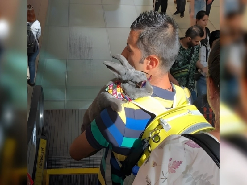 This rabbit made everyone on the metro happy. This amazing picture most certainly shows a wonderful scenario of an unexpected animal passenger making commuters happy. The picture most likely features a domesticated rabbit, maybe seated peacefully on its owner’s knee or in a specifically made pet carrier, attracting smiles and attention from other subway users. The rabbit is much more striking if it has uncommon size or unique markings. The way the human passengers expressed themselves would be crucial for the picture, probably displaying a spectrum of responses from surprise and happiness to pure laughing. While some would be photographing with their phones, others could be reaching out to pet the bunny. A train car’s usually antiseptic, impersonal surroundings and the soft, fuzzy animal would generate a striking visual impact. This picture is evidence of how animals could unite people and boost moods in unusual locations. It emphasizes the healing power of animal contact—even in fleeting, unexpected meetings. The picture could start discussions on the advantages of pet therapy, the difficulties and pleasures of traveling with animals, and the ways in which little, unplanned events might liven our daily lives and help us to meet people.