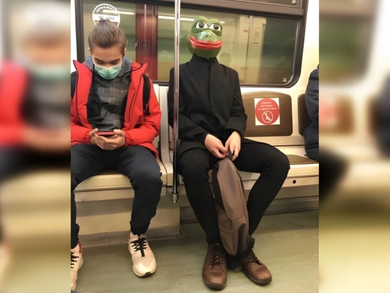 Man for Frogs. This odd and funny picture probably shows someone using public transportation in an outrageous frog costume. The picture might show someone totally decked out in a brilliant green, full-body frog outfit, complete with bulging eyes, a huge mouth, maybe webbed hands and feet. With textured “skin” and maybe even a long, curled tongue, the costume might be quite finely designed. This fanciful, amphibious figure would be strikingly and humorously juxtaposed against the backdrop of a plain bus or subway car. From spontaneous laughter and picture-taking to practiced nonchalance from seasoned commuters who have seen it all, the reactions of fellow passengers would lend still another level of fun to the spectacle. The ‘Frog Man’ would be seen participating in usual commuting activities, such as reading a newspaper, checking a phone, or just gazing out the window, so accentuating the ridiculousness of the circumstances. This picture reminds me gently of the unanticipated pleasures that abound in daily life. It honors originality, humor, and the readiness to add a bit of the remarkable to everyday events. The picture might spark debates about performance art, cosplay culture, and the function of comedy in livening up the sometimes depressing public transportation experience.