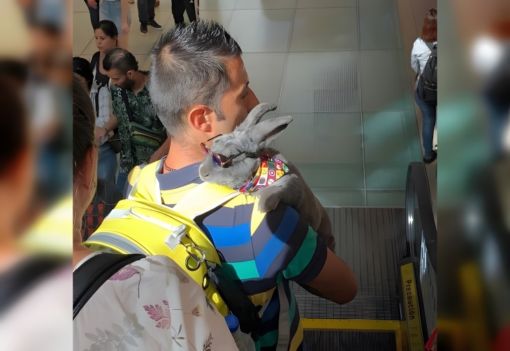 This rabbit cheered everyone up on the subway.