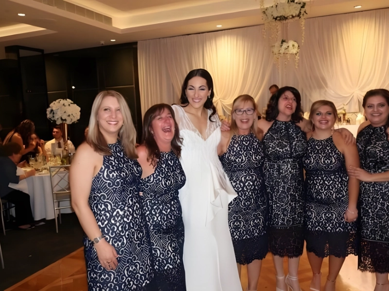 Due to their identical dresses, anyone would initially assume that these six women were bridesmaids. But these were just random strangers who happened to wear the same attire to a wedding.
