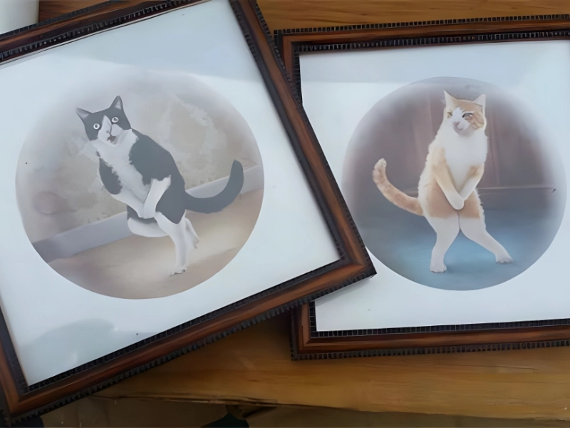 Located at: Unknown Worth: $1* Cat photos at thrift shop prices usually makes an impression, whether or not you are a cat lover. That is also what the buyer of these photos initially believed, but after further examining them, they saw that something wasn’t quite right. The cats’ agitated and uneasy appearance gave them the impression that they were about to urinate.