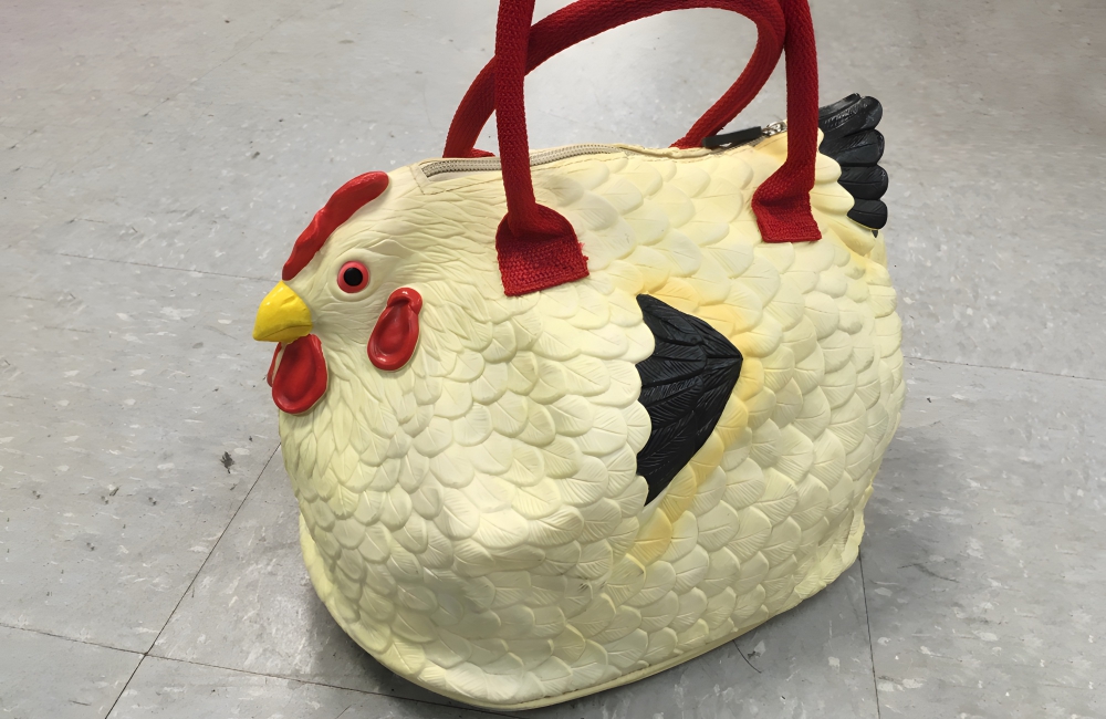 Found at: GoodwillValue: $5-$10*Perhaps with a good clean, this purse could be a unique accessory to carry around. After all, Moschino has purses shaped like cheeseburgers and sundaes. A thrift store shopper found this chicken-shaped purse at Goodwill.