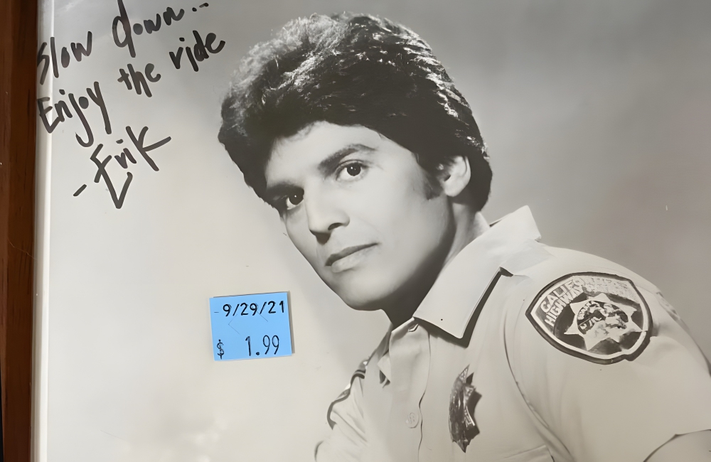 Found at: UnknownValue: $1.99*Actor Erik Estrada was one of the most famous TV stars in the late 1970s and early 1980s. He starred on CHiPs, where he had a lead role as a California Highway Patrol Officer. The actor probably signed quite a few photos of himself in his CHiPs uniform back in the day, and it appears that one found its way to a thrift store, where it was selling for $1.99.