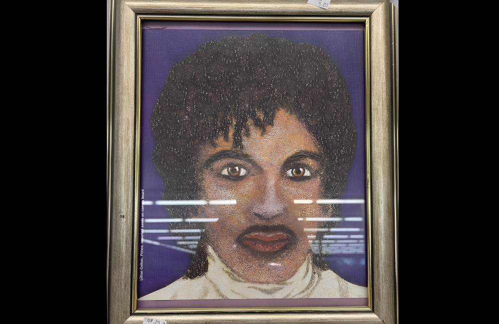Prince Portrait ©r/ThriftStoreHauls/u/weenphisher76/RedditAccording to the person who bought it for $5, this Prince caricature was made entirely from seeds. For being created out of such an unusual medium, the picture looks as accurate as you can imagine, right down to the hairstyle and coal-black eyeliner for which the artist was so famous.
