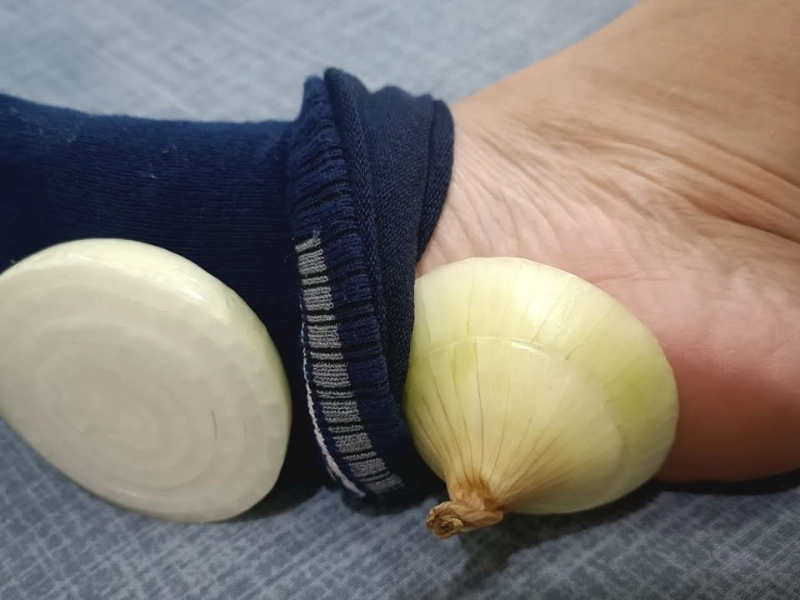 Usually overnight, wearing the onion socks for six to eight hours is advised. Considered normal are some users reporting a little tingling sensation or a hot sense. Change the socks right away if you feel any irritation or discomfort. Remove the socks first thing in morning and throw away the onion slices. Give your feet careful washing and, if necessary, moisturize. While some practitioners advise employing the procedure once or twice a week as a prophylactic strategy, others advise repeating this process several consecutive nights, particularly during times of illness or stress.