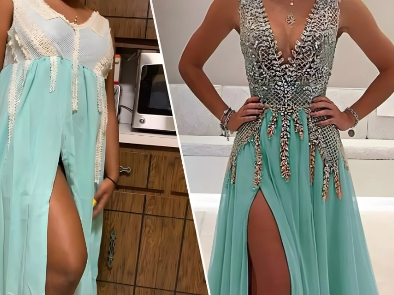 Crystal V-Neck Prom Dress @KnockOffNightmares/Facebook