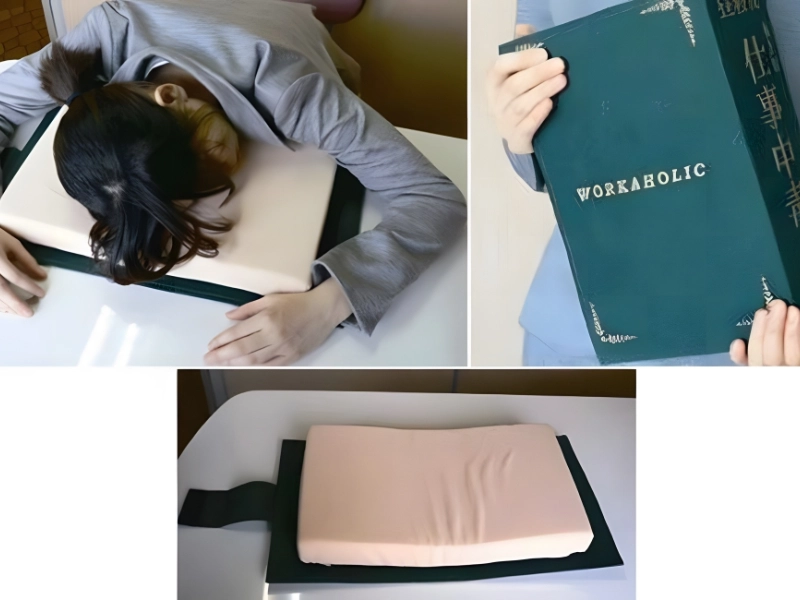 The book pillow weighs slightly more than a pound and is almost four inches thick. Even though they work extremely hard, the Japanese are among the people who sleep the least in the world, according to a survey published in The Japan Times.