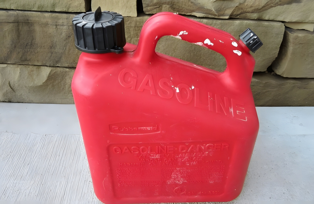 Red gas cans have been around for decades, and they almost always have a certain look to them. They have a spout at the opening, from which you pour, and a spout on the handle. The small hole in the handle prevents a vacuum from forming when you pour.