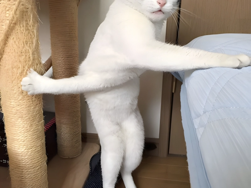 We love this photo. You’ve likely heard of pooches doing the downward-facing dog yoga pose, but have you seen a kittie striking its own yoga stretches? Well, if you haven’t, now you have. We can’t say that we’ve ever seen anything like this (until today!) As you can see, this feline is caught between its scratching post and the bed. Perhaps he’s conflicted and doesn’t know which to go to?