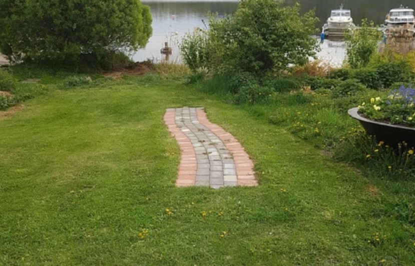 Either they ran out of outdoor tiles or they simply got tired of laying them.
