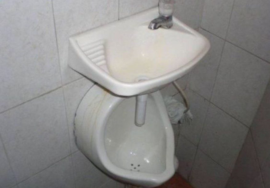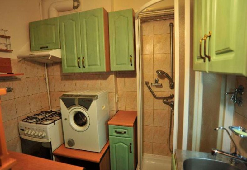 Looks like the washing machine is here for decoration; you won’t be able to open it anyway.
