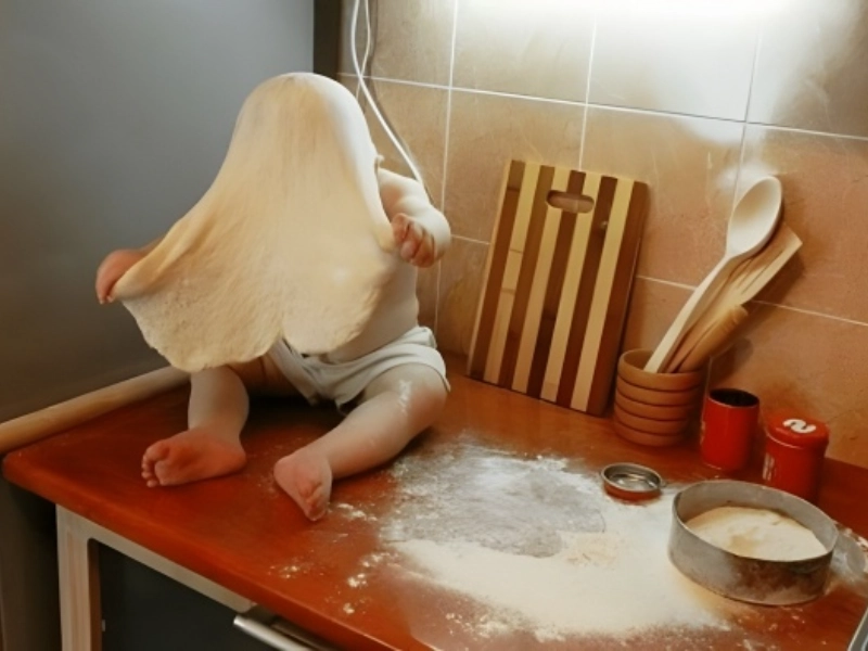 There went a mistake. This picture probably shows the aftermath of a child’s misadventure or a well-meaning but comically disastrous attempt at assisting. Perhaps a kitchen smeared with flour and egg from a baking attempt gone bad, a living room turned into an improvised indoor water park, or a toddler covered head-to-toe in an unidentified sticky material in the picture of home anarchy. From bashful shame to pure delight in their “accomplishment,” the child’s facial expression could range. Perhaps including details like overturned furniture, confused animals, or the first phases of parental reaction, the photographer has caught this moment of calamity in all its untidy grandeur. This picture reminds me humorously of the erratic character of childhood and the need of learning to laugh at the tiny tragedies of life. Parents and other caregivers who have gone through such chaotic events will find resonance in this kind of image, which also acts as a cheerful caution to others yet to enjoy the rewards and difficulties of parenthood. Given that it’s not happening in the viewer’s house, the picture probably triggers a mix of pity, entertainment, and maybe some relief.