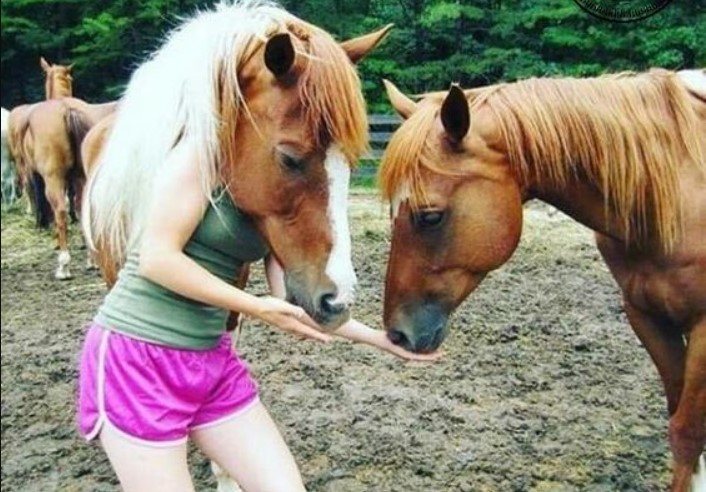 A girl with a horse’s head.