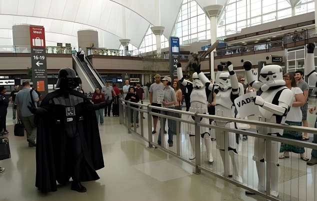 When a new Star Wars movie comes out, the die-hard fans need to prep and plan accordingly for what might be the most monumental moment of their year. These fans decided to coordinate before the release of The Last Jedi to ensure they experienced it altogether. When the Stormtrooper’s friend, Darth Vader arrived at Denver airport, they greeted him by playing the “Imperial March” out loud and celebrated his arrival at the gate while onlookers couldn’t help but laugh.