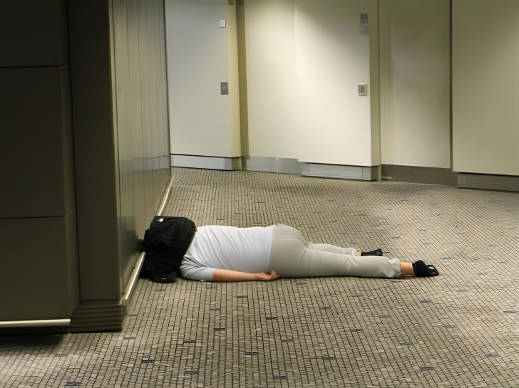 This is what happens when you’re on a layover and your flight gets delayed for hours. Isn’t this what we all want to do when we’re stuck at the airport? Sometimes all we need is to lay down for a few minutes to recharge. Hopefully no one stepped on this woman while she took her power nap.