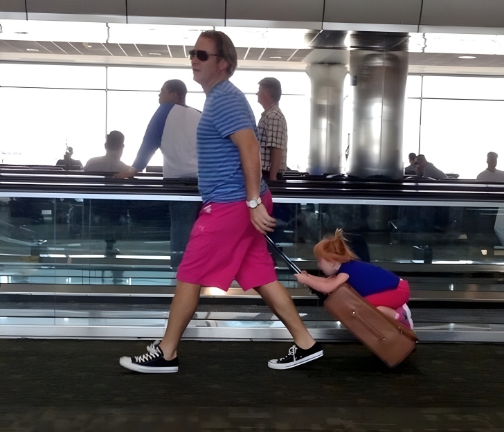 This little girl’s legs were too short to keep up with her dad as he rushed through the airport, so she decided to hitch a ride on his suitcase instead. Did he notice that his bag suddenly got heavier? We’re sure that other tired passengers looked on with envy, wishing they could also ride on someone’s suitcase instead of walking.