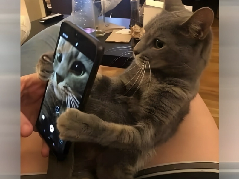 The scenario wonderfully captures the present era in which even our dogs seem to be enmeshed in the selfie culture. The kitten’s deliberate posture and focused attitude imply it is approaching this photo session extremely seriously, as if it has been seeing human behaviour and decided to try its paw at social media stardom. Its posture, extending out towards the screen, produces a funny analogy to how people sometimes twist themselves to attain the ideal angle for their selfies. This specific moment catches the playful spirit of kittens as well as their amazing ability to, even inadvertently, copy human actions.