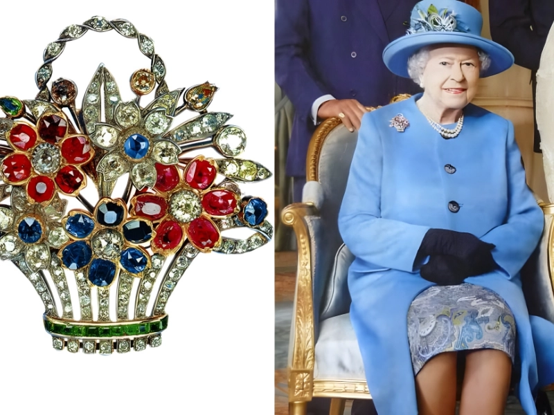 Queen Elizabeth II’s Flower Basket Brooch, @Suzanne Chenoweth, @Edwin Hutcheson, and Pinterest