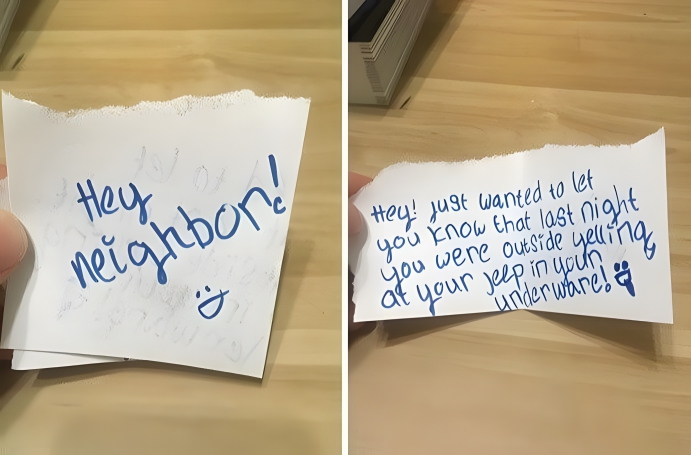 Sleepwalking can be a terrifying and actually dangerous thing – especially if you don’t even know that you are a sleepwalker. Can you imagine getting a note like this from your neighbor, alerting you to your sleepwalking tendencies? It would probably be slightly scary and alarming to find out that you wander through the neighborhood in your underwear at night, yelling at your car. At least they now have a warning from their neighbor!