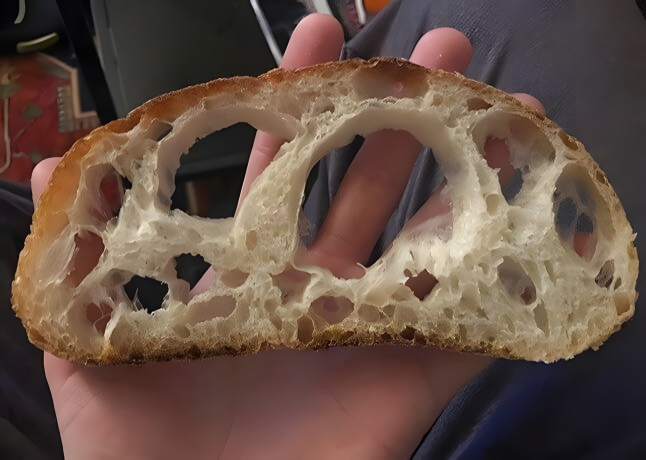 Although having an airy piece of bread can be a good thing, you normally don’t want it to be taken to this extreme. After all, how is someone supposed to make a sandwich with a piece of bread like this? There are far too many holes for this to work. Imagine trying to spread mayo or mustard on a piece of bread that has as many holes as this one does.