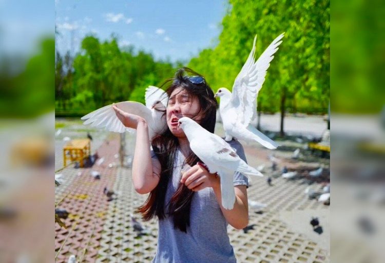 Funny pigeon attack.