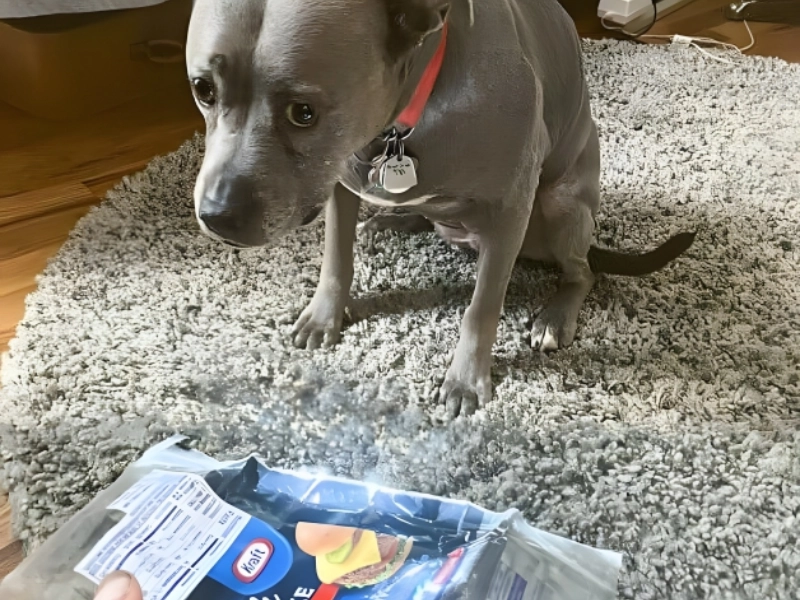 If you are a dog mom, you most likely know the expression on this dog’s face. Usually, they pull this expression after they chewed up their laces, removed the stuffing from your preferred cushion, or ate something they know they shouldn’t have. And on this occasion, when her dog mom was showering, this dog ate a full stack of Kraft singles. She had to have inhaled them to consume them so fast!