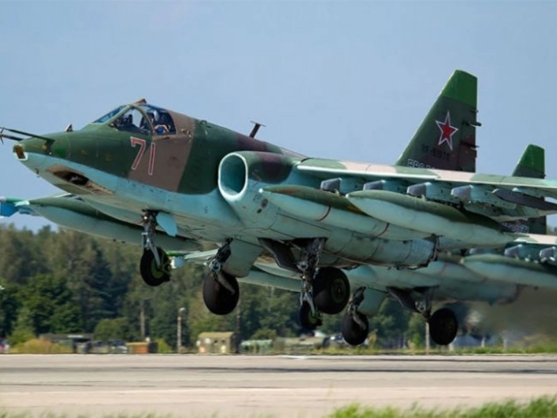 Máy bay tấn công bọc thép Su-25SM (NATO có tên mã là Frogfoot). Đây là loại Su-25 được cập nhật với động cơ P-95 và P-195 đáng tin cậy nhất trong cùng loại. Điều đáng chú ý là ngay cả khi một động cơ không hoạt động, máy bay vẫn có thể bay. Chức năng chính của Su-25SM là hỗ trợ lực lượng mặt đất. 12 thiết bị trong số này, trị giá tổng cộng 120 triệu USD, đã được chuyển đến Syria.