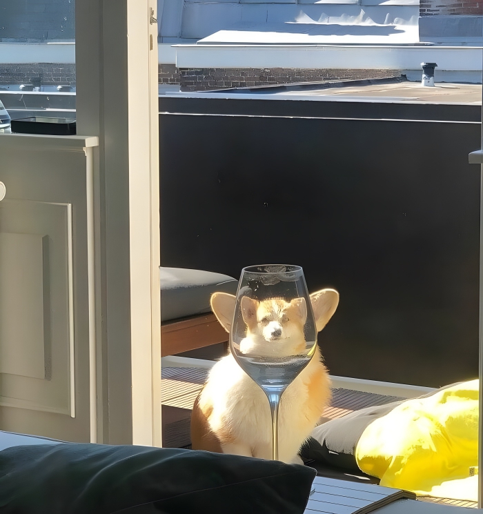 This is actually a really cool shot of someone’s pet corgi. The pup is just standing there minding its own business, probably wondering why its owner is laughing hysterically and snapping photos. Honestly, it’s not fair, and we’re sure it was shown the photo after it was taken. Still, this probably isn’t the most flattering picture of this particular corgi. The glass makes its head look like it’s been shrunken down.