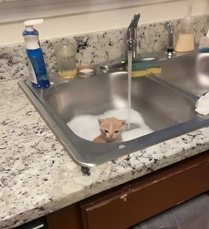 The look on this cat’s face pretty much says it all. It looks absolutely mad. Most cats hate water, but there is something to be said about getting them used to it from an early age. Some breeds of cats even like playing in the water, but we’re betting that this isn’t one of those breeds. It looks like it’s ready to get out of that sink in a hurry.