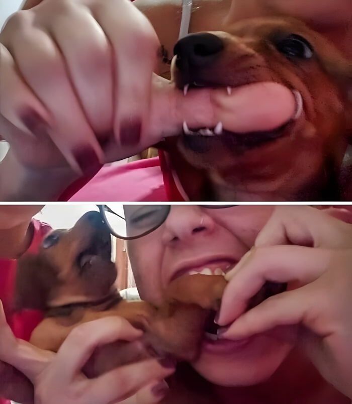 From the photo on the bottom, it’s probably pretty safe to say that the puppy in these photos was definitely not expecting its owner to bite back. It looks absolutely terrified in the second photo, almost as if someone is trying to murder it. All of this was mere moments after it was nibbling on its owner’s fingers. Maybe it just never expected its owner to actually bite back.
