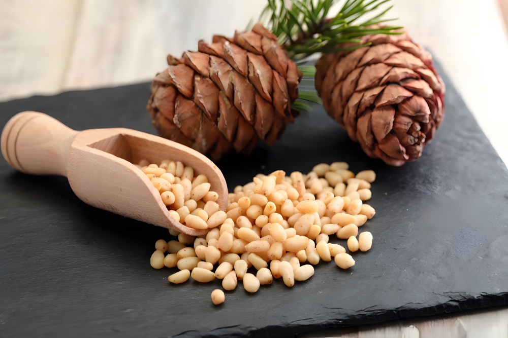 Cashew nuts are the next best thing to pine nuts since the two share key qualities. Firstly, cashew nuts have a similar texture and color to pine nuts. Secondly, cashew nuts add the same subtle sweetness to recipes as pine nuts.