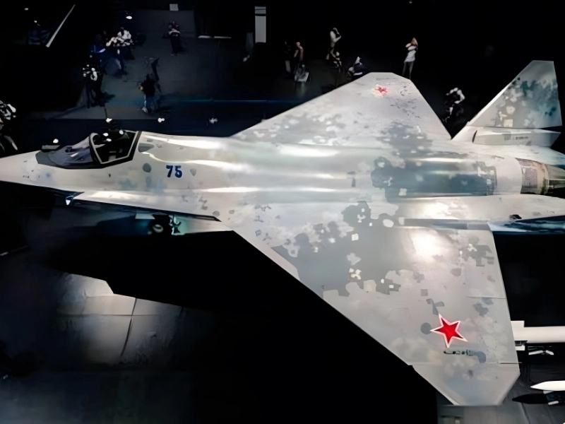 The Su-75 fighter jet can strike multiple targets at once and is equipped with over seven tons of air-to-surface and air-to-air weapons. Its internal weapons bays and V-shaped tail are intended to lessen its radar signature, as is its top speed of Mach 1.8.
