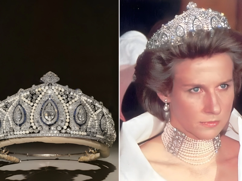 It’s not necessary to be one of the Royal Family’s most well-known members to have an impressive jewelry collection. The Cartier Indian Tiara is an incredibly large headdress composed of sapphires, diamonds, and pearls.