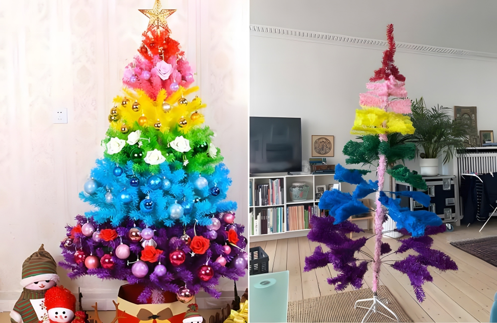 The vision of a rainbow Christmas tree, so vibrant and dense, it could be a unicorn’s dream home, is what was promised. What landed in the living room? A more “unique” version.