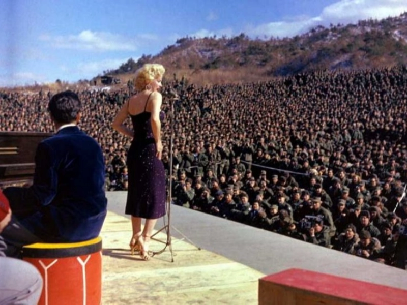 In 1954, the renowned Marilyn Monroe sang a song for the troops.Marilyn Monroe was an American actress, singer, and model who rose to fame in Hollywood and became a cultural icon. Both on and off film, she was renowned for her beauty, charm, and charisma.