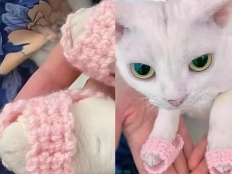 With all four of its paws covered in teeny, tiny, lovingly knitted slippers, caught on camera may be the most puzzled cat you have ever seen. These are not just any slippers; they are handcrafted by a committed granny who absolutely thinks no family member should go without her knitting magic. The internet believes that a labour of love also happens to be quite beautiful.