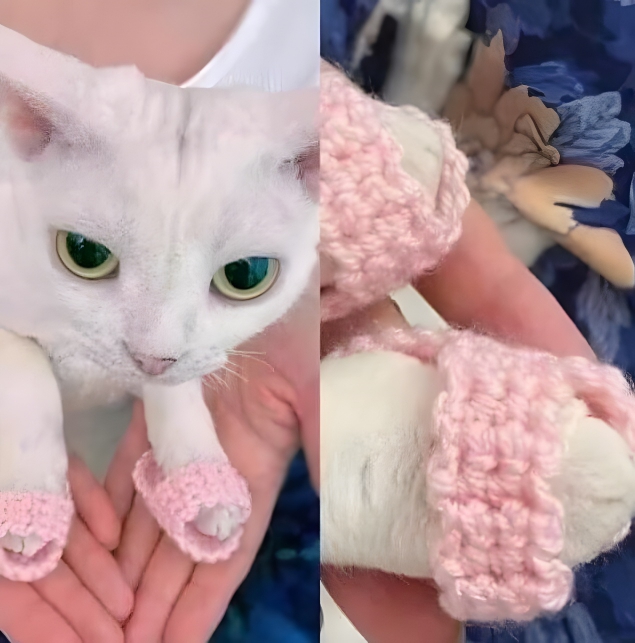 Caught on camera might be the most confused cat you’ve ever seen, with all four paws encased in teeny, tiny, painstakingly knitted slippers. These are not just any slippers; they’re handcrafted by a dedicated grandma who clearly believes that no family member should go without her knitting magic. A labor of love that also happens to be extremely adorable- and the internet agrees.