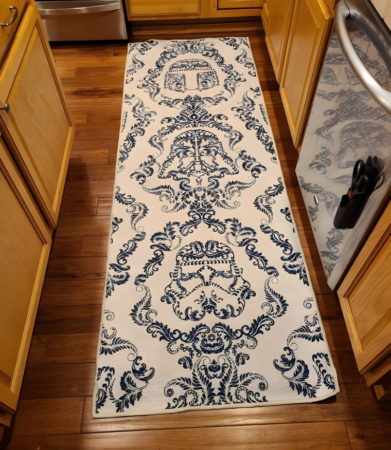 At first glance, you see a beautifully patterned carpet, its abstract design tastefully matching any modern decor. But, give it a second look, and there he is. Not a phantom villain, but the dark lord himself- Darth Vader, lurking in this living room. This is not your average rug; it’s a not-so-subtle nod to the Star Wars fan who can’t enough. You’ve heard of Where’s Waldo, but how about Where’s Vader?