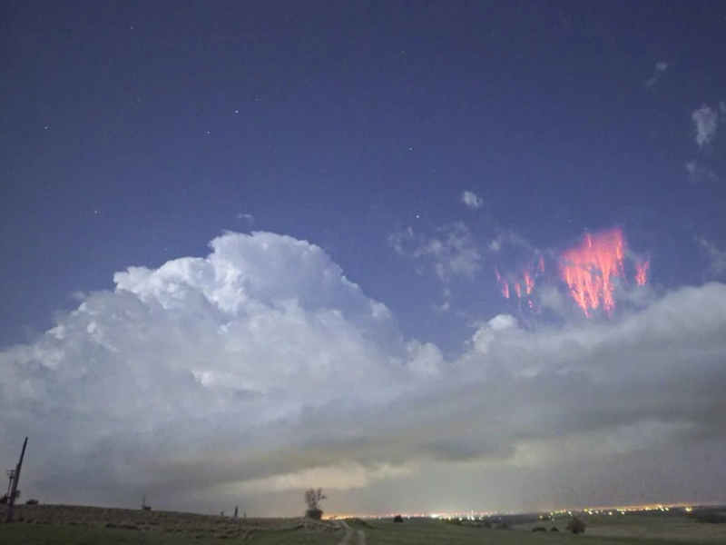 Often characterised as like enormous jellyfish hovering in the high atmosphere, red sprites are among the most mysterious kinds of red lightning. Usually at heights between 50 and 90 km, these transient flashes of crimson light happen well above thunderstorms. Red sprites soar upward from the top of thunderclouds towards the edge of space, unlike ordinary lightning, which runs from cloud to earth.