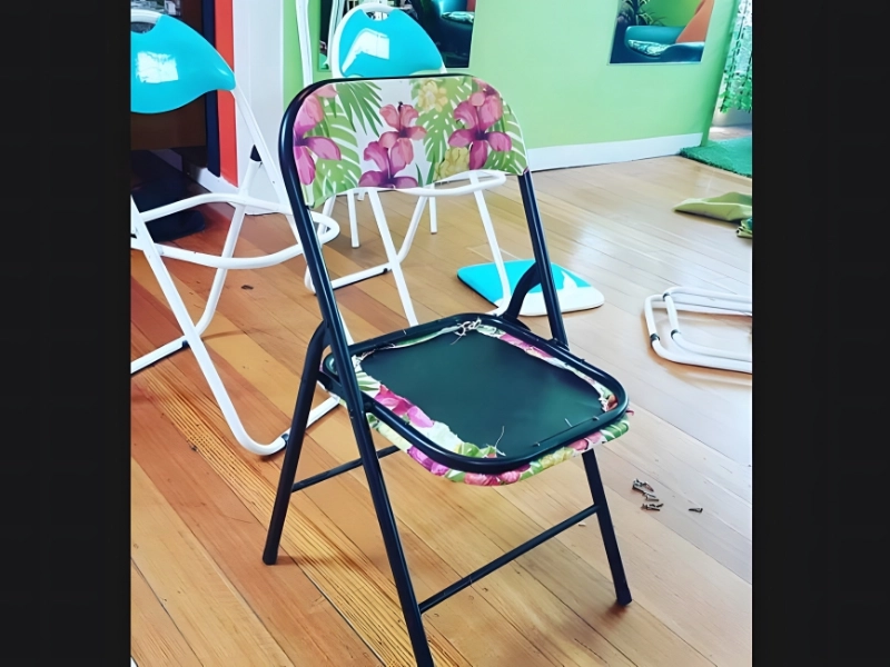 Like everything else, folding chairs are reasonably priced and available for purchase on Amazon. The price of a four-pack is $83.49. At $18–$34 for Hawaiian fabric, this is an unexpectedly costly do-it-yourself project. Fortunately, it should be a simple fix—just tear out the upholstery and start over.
