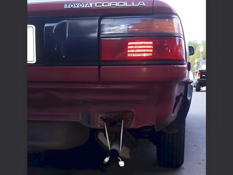 Thankfully, the owner of the car came up with a smart solution: use an Apple iPhone charger. He was playing with fire, knowing that iPhone chargers break easily, but as long as that charger holds, he should be fine. I’m sure the officer who finally stops him for a traffic infraction will recognize his resourcefulness.